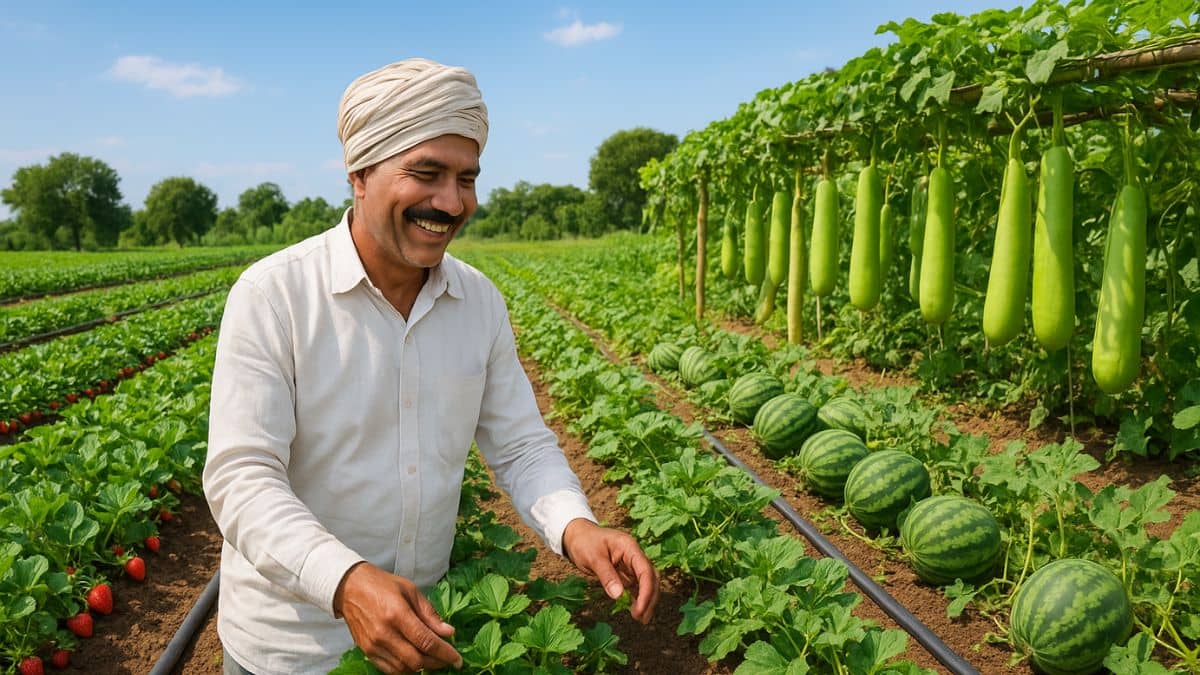 मल्टी-क्रॉपिंग (Multi Cropping) किसानों के लिए बड़ा मुनाफा कमाने का बेहतरीन तरीका है. स्ट्रॉबेरी, तरबूज और लौकी की खेती को एक साथ करके किसान सालभर आय प्राप्त कर सकते हैं. सिर्फ एक एकड़ जमीन में यह तरीका अपनाकर 10 लाख रुपये तक कमाया जा सकता है. इसमें कब बुवाई करें, कितनी लागत आएगी और कितना मुनाफा मिलेगा, इसकी पूरी जानकारी होना बेहद जरूरी है. आधुनिक खेती तकनीक और सही फसल प्रबंधन से किसान अपनी आमदनी दोगुनी कर सकते हैं.