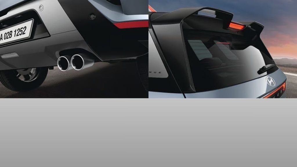 कार का रियर सेक्शन भी काफी डायनामिक है. यहां स्पोर्टी स्पॉइलर, ‘N Line’ बैजिंग और डुअल एग्जॉस्ट टिप्स इसे स्टैंडर्ड Venue से अलग बनाते हैं. बंपर पर दी गई रेड स्ट्राइप और ट्रायएंगुलर रिफ्लेक्टर्स इसके लुक को और शार्प बनाते हैं. सिल्वर और ब्लैक कलर स्कीम वाला स्किड प्लेट डिजाइन इसे रेस कार जैसी फील देता है.