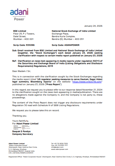 23 जनवरी 2026 (शुक्रवार) को इस खबर के चलते अडानी ग्रुप के शेयरों में तेज बिकवाली हुई. अडानी ग्रीन एनर्जी के शेयर 14.54% तक गिरे, अडानी एनर्जी सॉल्यूशंस 12.12%, अडानी एंटरप्राइजेज 10.65%, अडानी पोर्ट्स 7.48% और अडानी पावर 5.65% नीचे बंद हुए. बाकी ग्रुप कंपनियों में भी 3-5% की गिरावट रही. पूरे दिन में ग्रुप की कंपनियों का मार्केट कैप करीब 12.5 अरब डॉलर (लगभग 1 लाख करोड़ रुपये से ज्यादा) कम हो गया. निवेशकों में चिंता बढ़ी, लेकिन इस स्पष्टीकरण के बाद बाजार में कुछ स्थिरता लौट सकती है.