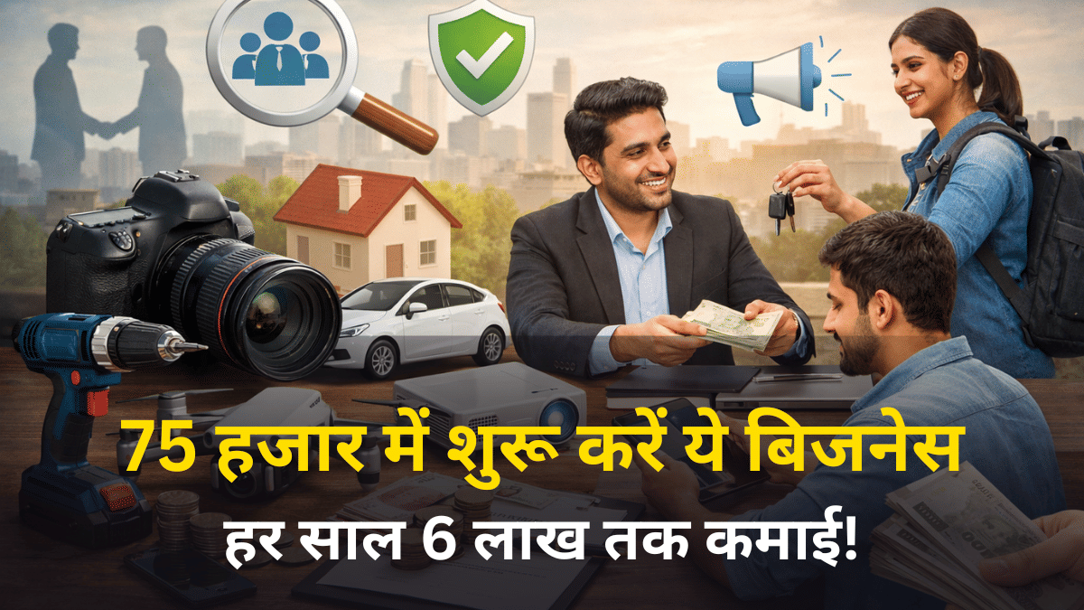 आपके घर में कई सामान जैसे कैमरा, ड्रोन, प्रोजेक्टर, ड्रिल मशीन या कार में आपके पैसे फंसे हुए हैं. इन्हें किराए पर देकर आप आसानी से अतिरिक्त कमाई शुरू कर सकते हैं. यह एसेट ब्रोकरिंग सर्विस सिर्फ 75 हजार के निवेश से शुरू होती है, जिसमें आप 15-25% कमीशन कमा सकते हैं. महीने में 30-50 हजार तक की इनकम संभव है!