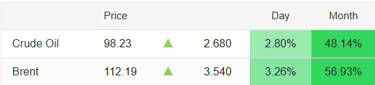 अपने रिकॉर्ड हाई लेवल को तोड़ेगा कच्चा तेल! WTI 98 डॉलर पर, तो ब्रेंट 112 डॉलर के पार