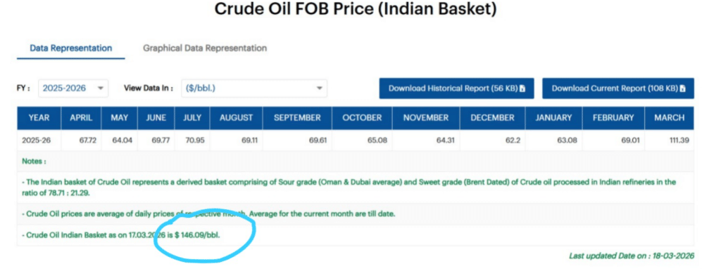 Crude Oil Crisis: पश्चिम एशिया में बढ़ते तनाव ने कच्चे तेल की कीमतें सातवें आसमान पर पहुंचा दी है. इसने भारत की टेंशन बढ़ा दी है. कच्चे तेल की बढ़ती कीमतें अब सिर्फ एक ऊर्जा संकट नहीं, बल्कि आर्थिक दबाव की बड़ी घंटी बनता जा रहा है. घरेलू रिफाइनरियां जिस औसत कीमत पर तेल आयात करती हैं, यानी इंडियन क्रूड ऑयल बास्केट, 17 मार्च को 146.09 डॉलर प्रति बैरल तक पहुंच गई है. यह फरवरी के औसत 69.01 डॉलर प्रति बैरल के मुकाबले 111.7 फीसदी की तेज उछाल है. इस तेजी ने उद्योगों की लागत, सरकारी वित्त और आम लोगों की जेब, तीनों पर दबाव बढ़ाने के संकेत दे दिए हैं. इतना ही नहीं इससे आने वाले दिनों में पेट्रोल-डीजल के महंगे होने का भी खतरा मंडराने लगा है.