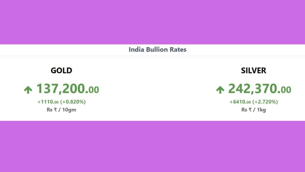 मल्टी कमोडिटी एक्सचेंज ऑफ इंडिया (MCX) पर फरवरी डिलीवरी वाला सोना सुबह करीब 9.18 बजे 0.66% की तेजी के साथ ₹1,36,701 प्रति 10 ग्राम पर कारोबार करता दिखा. वहीं मार्च डिलीवरी वाली चांदी 2.17% चढ़कर ₹2,40,985 प्रति किलो पर पहुंच गई. यानी शुरुआती कारोबार में सोना 900 रुपये तो चांदी 5000 रुपये से ज्यादा महंगी हो गई.