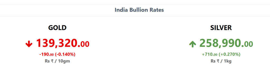 7 जनवरी की सुबह करीब 9.10 बजे मल्टी कमोडिटी एक्सचेंज यानी MCX पर फरवरी डिलीवरी वाला सोना 0.17 प्रतिशत टूटकर 1,38,850 रुपये प्रति 10 ग्राम पर कारोबार कर रहा था. वहीं MCX पर मार्च डिलीवरी वाली चांदी 0.19 प्रतिशत की तेजी के साथ 2,59,310 रुपये प्रति किलो पर पहुंच गई.