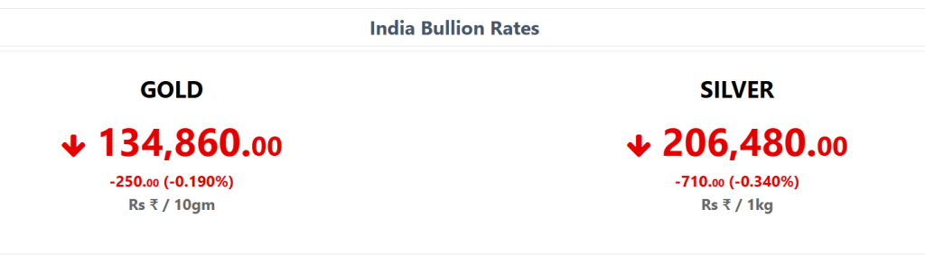 Gold and Silver Price Today: सोने-चांदी की कीमतों में जारी पर ब्रेक लग गया है. इनकी कीमतें औंधे मुंह लुढ़क गई हैं. मुनाफावसूली के चलते सोने-चांदी की कीमतों में 18 दिसंबर को गिरावट दर्ज की गई. मल्टी कमोडिटी एक्सचेंज यानी MCX पर गुरुवार को सोना 311 रुपये लुढ़ककर 134,583 रुपये प्रति 10 ग्राम पर कारोबार करता नजर आया. वहीं चांदी 1139 रुपये सस्ती होकर 206,296 रुपये प्रति किलो पर कारोबार करती दिखी.
