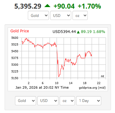 सोना फिलहाल करीब 5,395 डॉलर प्रति औंस पर ट्रेड कर रहा है. इसमें करीब 90 डॉलर की बढ़त दर्ज की गई है. यानी लगभग 1.7 प्रतिशत की तेजी. ग्राफ में देखा जा सकता है कि दिन की शुरुआत में कीमत ऊंचे स्तर पर थी. फिर अचानक तेज गिरावट आई. इसके बाद धीरे धीरे रिकवरी हुई और दाम फिर से ऊपर चढ़ते दिखे. अभी भी कीमतें पहले से बेहतर स्तर पर बनी हुई हैं.