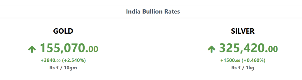 Gold and Silver Rate today: सोने-चांदी ने बनाया नया रिकॉर्ड हाई, गोल्ड ₹154000 के पार, सिल्वर भी ₹325,784 पर पहुंची