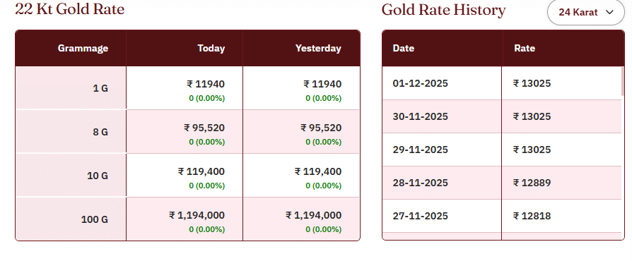 22 कैरेट यानी जेबराती सोने की कीमत प्रति 10 ग्राम 1,18,846 रुपये है. वहीं 20 कैरेट सोना प्रति 10 ग्राम 1 लाख 8 हजार रुपये है.