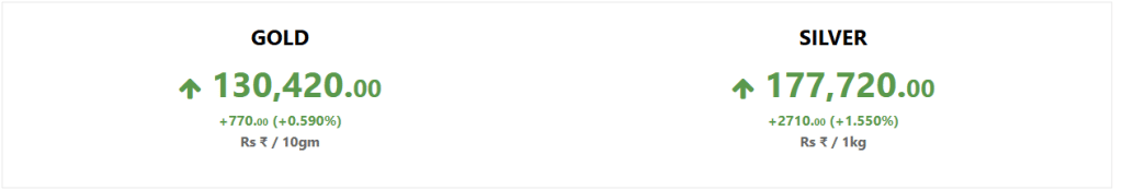 Gold Rate Today: सोने-चांदी की कीमतों में एक बार फिर तेजी देखी जा रही है. दिसंबर महीने के पहले दिन सोने की कीमत प्रति 10 ग्राम 1,30,420 रुपये पर पहुंच गई. वहीं 1 किलो चांदी के भाव 1 लाख 77 हजार 720 रुपये हो गए हैं. बुलियन के अनुसार, 29 नवंबर को 24 कैरेट सोने की कीमत 1,27,580 रुपये थी, जिसमें लगभग 2,840 रुपये की बढ़ोतरी हुई है. वहीं 999 फाइन चांदी की कीमत 1,72,740 रुपये प्रति किलो दर्ज की गई थी.