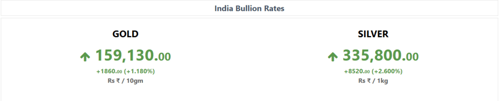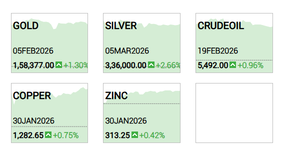 MCX के अनुसार गोल्ड फ्यूचर में 1.30 फीसदी की तेजी आई है. इस तेजी के बाद यह 1,58,377 रुपये पर पहुंच गया. वहीं चांदी की कीमतों में 2.66 फीसदी का उछाल देखा गया. इस तेजी आने के बाद यह 3,36,000 रुपये के स्तर पर पहुंच गई.