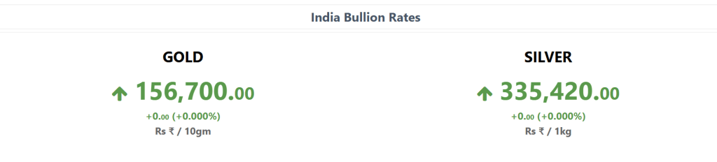 Bullions.in पर सोने की कीमत 24 जनवरी को 1,56,700 रुपये प्रति 10 ग्राम दर्ज की गई. जबकि चांदी 335,420 रुपये प्रति किलो के स्तर पर पहुंच गई. वहीं कैरेटलेन पर 22 कैरेट सोना आज 12587 प्रति ग्राम के हिसाब से मिल रहा है.