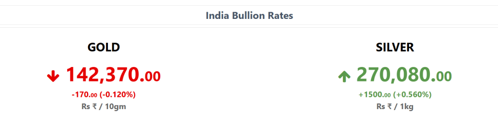 रिटेल में देखें तो कैरेटलेन में 13 जनवरी को 22 कैरेट सोने की कीमत 12587 रुपये प्रति ग्राम दर्ज की गई. वहीं बुलियन वेबसाइट के मुताबिक 24 कैरेट सोना मंगलवार को 170 रुपये की मामूली गिरावट के साथ 142,370 रुपये प्रति 10 ग्राम पर मिल रहा था, जबकि चांदी 1500 रुपये चढ़कर 270,080 रुपये प्रति किलो पर मिल रही थी.