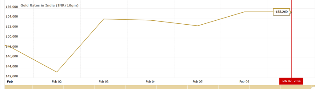 बुलियन वेबसाइट के डेटा के मुताबिक 1 फरवरी को 10 ग्राम गोल्ड की कीमत 148240 रुपये थी, जबकि 7 फरवरी को ये 155260 रुपये प्रति 10 ग्राम था. इस लिहाज से ये हफ्ते भर में ₹7,020 महंगा हुआ. जबकि चांदी की कीमत 1 फरवरी को चांदी की कीमत 266500 रुपये प्रति किलो थी, जबकि 7 फरवरी को ये 250400 रुपये प्रति किलाे दर्ज की गई. इस लिहाज से चांदी की कीमत ₹16,100 घटी है.