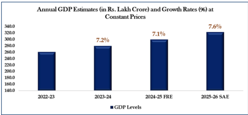 पिछले वर्षों के ग्रोथ अनुमानों को भी ऊपर की ओर बदला गया है. FY25 के ग्रोथ नंबर को पहले के 6.5 फीसदी से बदलकर 7.1 फीसदी कर दिया गया, जबकि FY24 की ग्रोथ पिछली सीरीज के 9.2 फीसदी की तुलना में 7.2 फीसदी रही. तिमाही डेटा पूरे फाइनेंशियल ईयर में स्थिर रफ्तार दिखाते हैं. तीसरी तिमाही में इकोनॉमी 7.8 फीसदी बढ़ी, जबकि दूसरी तिमाही में 8.4 फीसदी और पहली तिमाही में 6.7 फीसदी बढ़ी थी.