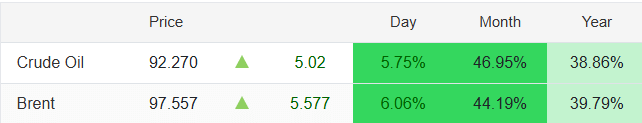 - WTI क्रूड में मासिक आधार पर करीब 46.95% और सालाना आधार पर 38.86% की बढ़त दर्ज हुई है.