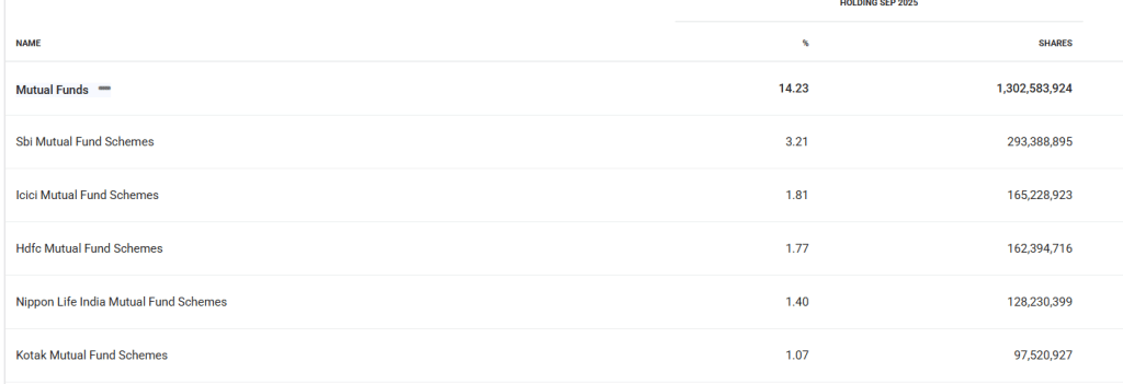 - डेटा के मुताबिक सितंबर 2025 तक म्यूचुअल फंड्स की SBI में 14.23% हिस्सेदारी दर्ज की गई.