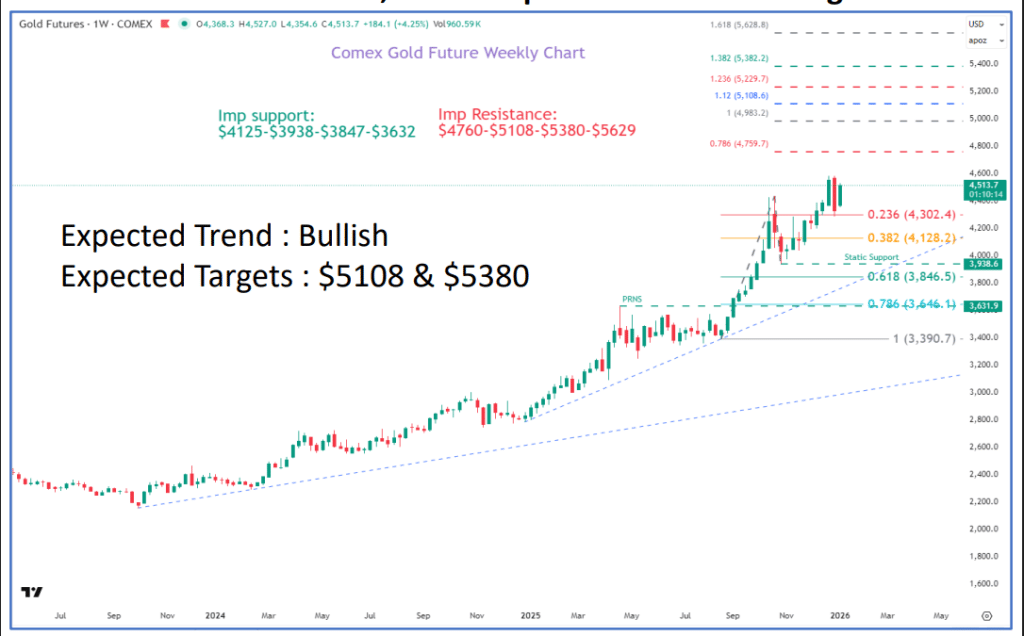 - US गोल्ड टारगेट: 5108 डॉलर और 5380 डॉलर
