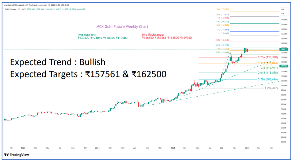 - MCX गोल्ड टारगेट: ₹1,57,561 और ₹1,62,500