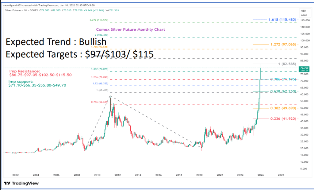 - US सिल्वर टारगेट: 97,103 और 115 डॉलर