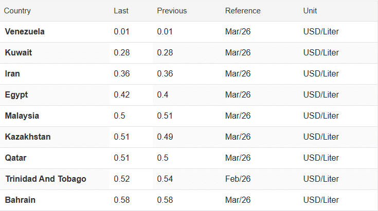 वेनेजुएला में पेट्रोल की कीमत सबसे कम है, जो करीब 0.01 डॉलर यानी लगभग ₹0.93 प्रति लीटर है. इसके बाद कुवैत में पेट्रोल करीब 0.28 डॉलर यानी लगभग ₹25.93 प्रति लीटर मिल रहा है. वहीं ईरान में पेट्रोल की कीमत करीब 0.36 डॉलर प्रति लीटर है, जो भारतीय रुपये में लगभग ₹33.35 प्रति लीटर होती है. इन तीनों देशों में पेट्रोल बेहद सस्ता है, जिसका मुख्य कारण सरकारी सब्सिडी और तेल के बड़े भंडार माने जाते हैं.