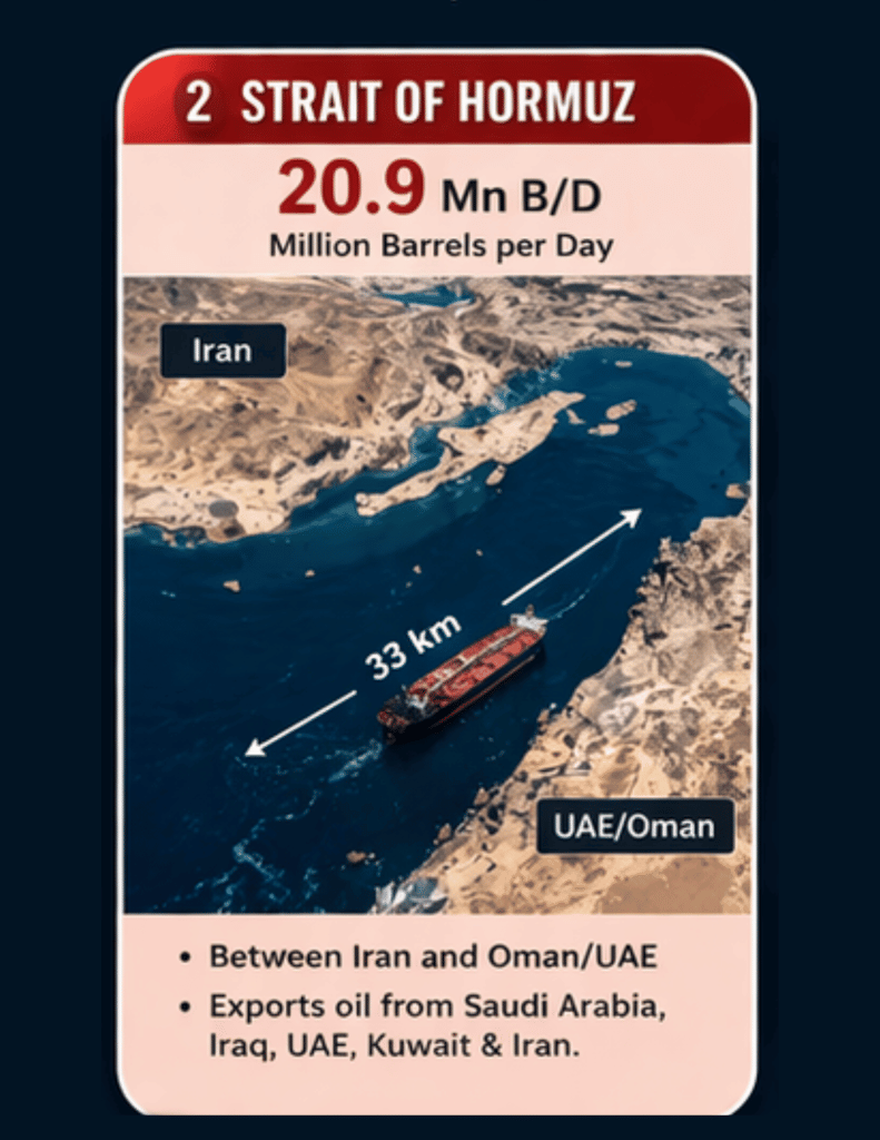 होर्मुज जैसे दुनिया में 8 चोक प्वाइंट, हर रोज गुजरता है 73.2 मिलियन बैरल तेल, जानें ईरान जैसा किनके पास चाबी