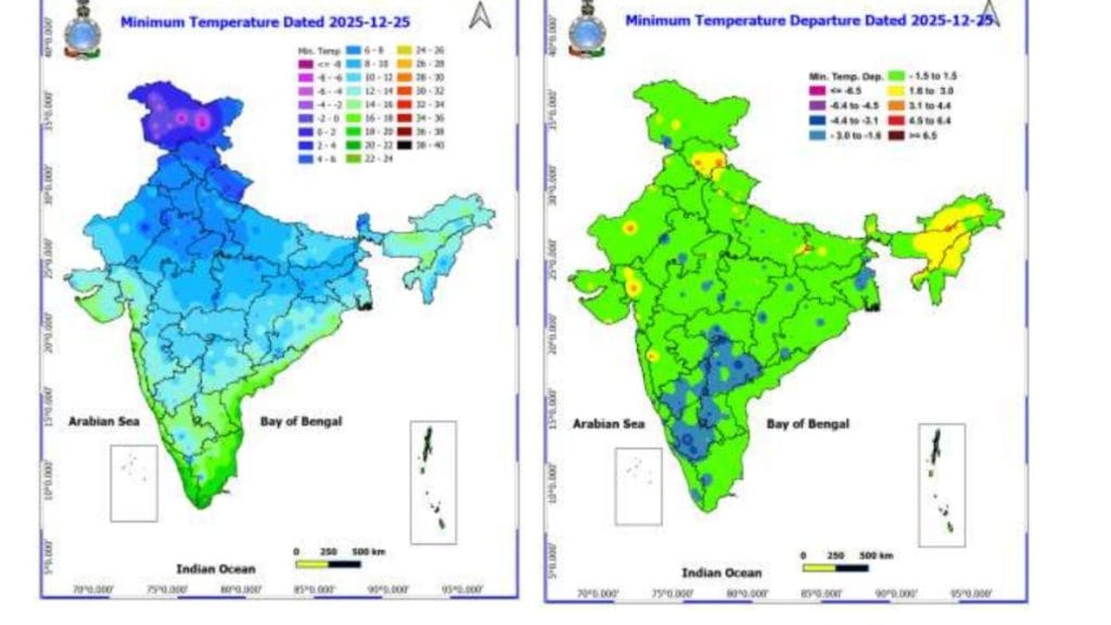 दक्षिण-पूर्व अरब सागर और बंगाल की खाड़ी में एक्टिव ऊपरी हवा के साइक्लोनिक सर्कुलेशन, उत्तर-पूर्व भारत के ऊपर सबट्रॉपिकल वेस्टर्ली जेट स्ट्रीम और 27 दिसंबर से पश्चिमी हिमालयी क्षेत्र को प्रभावित करने वाले नए पश्चिमी विक्षोभ के कारण मौसम में यह बदलाव देखने को मिल रहा है. असम में अगले दो दिनों में मिनिमम तापमान में 2 से 3 डिग्री सेल्सियस की गिरावट होने की संभावना है, जबकि छत्तीसगढ़ में अगले तीन दिनों में 1 से 2 डिग्री की गिरावट के आसार हैं.