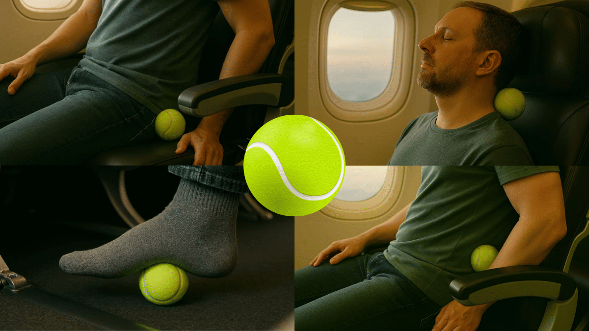 लंबी यात्रा में घंटों बैठे रहने से पैर भारी हो जाते हैं, कमर और कूल्हों में अकड़न आ जाती है और शरीर दर्द से भर जाता है. लेकिन एक छोटी सी टेनिस बॉल इन सारी परेशानियों को आसानी से दूर कर सकती है. सस्ती, हल्की और जगह न लेने वाली यह बॉल आपकी फ्लाइट, ट्रेन या रोड ट्रिप को आरामदायक बना देगी.