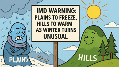 IMD ने इस विंटर सीजन के लिए बड़ा अलर्ट जारी किया है. मैदानों में कड़ाके की ठंड और पहाड़ी इलाकों में सामान्य से ज्यादा गर्मी देखने को मिलेगी. आमतौर पर पहाड़ी इलाकों में मैदान की तुलना में मौसम ज्यादा ठंडा रहता है, लेकिन एक खास भौगोलिक घटना की वजह से मौसम की उल्टी गंगा बह रही है.