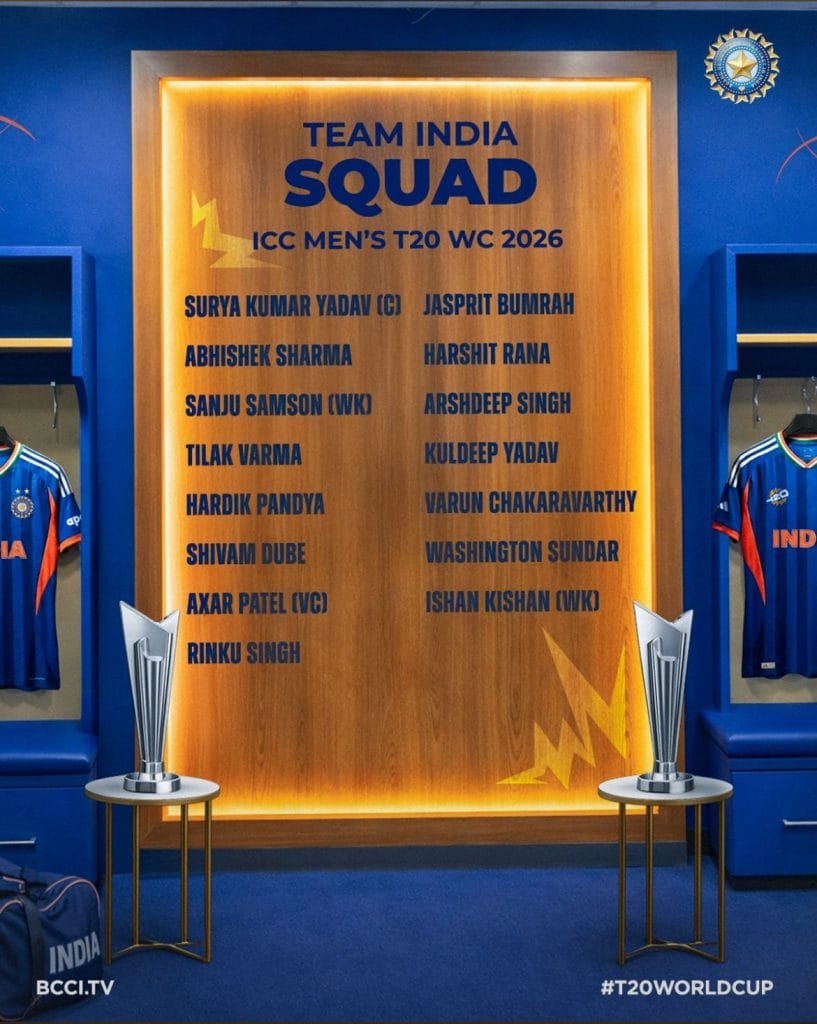 टी20 वर्ल्ड कप 2026 के लिए भारतीय टीम