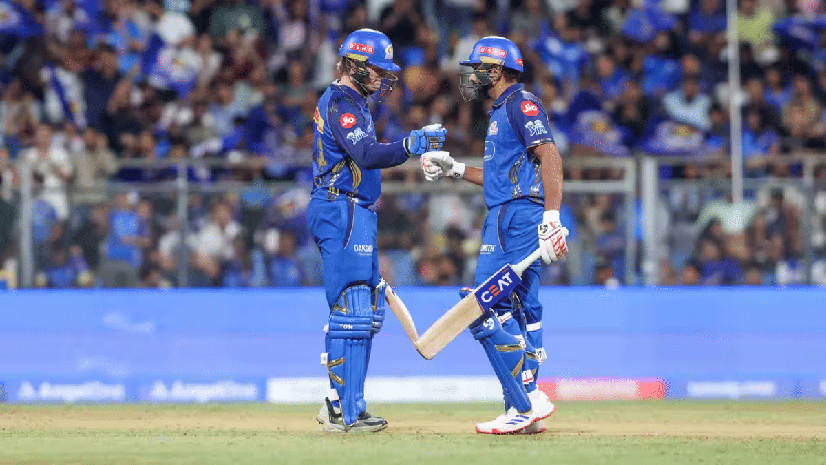 221 रनों के लक्ष्य का पीछा करने उतरी मुंबई इंडियंस ने शुरुआत से ही आक्रामक रुख अपनाया. सलामी बल्लेबाज रोहित शर्मा और रयान रिकल्टन के बीच पहले विकेट के लिए 148 रनों की शानदार साझेदारी हुई, जिसने मैच का रुख पूरी तरह मुंबई की ओर मोड़ दिया. पावरप्ले में ही टीम ने बिना विकेट गंवाए 80 रन जोड़ दिए थे, जिससे रन चेज आसान हो गया.