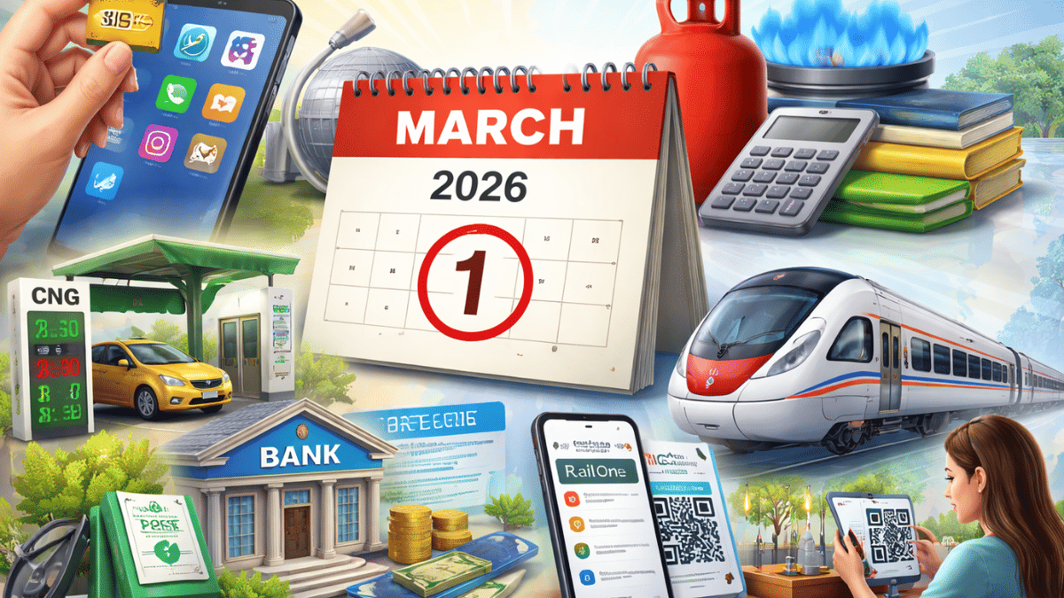 1 मार्च 2026 से लागू होंगे नए नियम: रेलवे ऐप, LPG, सिम कार्ड और बैंकिंग बदलावों का आपकी जेब पर पड़ेगा सीधा असर