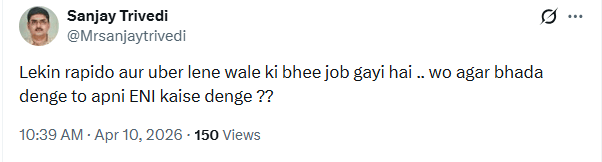संजय त्रिवेदी नाम के एक यूजर ने चिंता जताते हुए लिखा कि अगर Rapido या Uber जैसे काम भी बंद हो जाएं, तो फिर EMI कैसे भरी जाएगी. यानी उन्होंने अस्थिर कमाई पर सवाल उठाया.