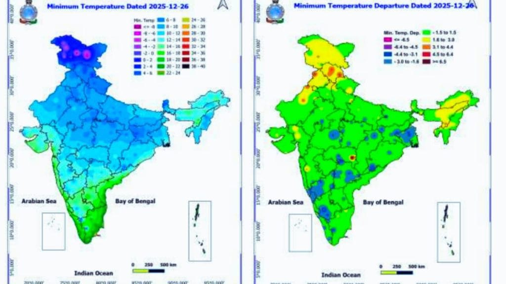 पूर्वी उत्तर प्रदेश में 26 और 27 दिसंबर को कुछ स्थानों पर कोल्ड डे से लेकर गंभीर कोल्ड डे की स्थिति बन सकती है. सब-हिमालयी पश्चिम बंगाल में 26 दिसंबर को, बिहार में 26 से 30 दिसंबर के बीच और उत्तराखंड में 26 से 28 दिसंबर के दौरान कोल्ड डे की संभावना है. पश्चिमी उत्तर प्रदेश में 26 और 27 दिसंबर तथा पूर्वी उत्तर प्रदेश में 28 दिसंबर को भी ठंड का असर ज्यादा रह सकता है. वहीं, उत्तर राजस्थान में 27 दिसंबर और झारखंड में 27 व 28 दिसंबर को कोल्ड वेव की चेतावनी जारी की गई है.