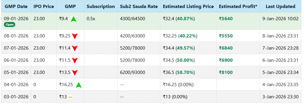 | प्राइस बैंड | ₹21 से ₹23 प्रति शेयर |