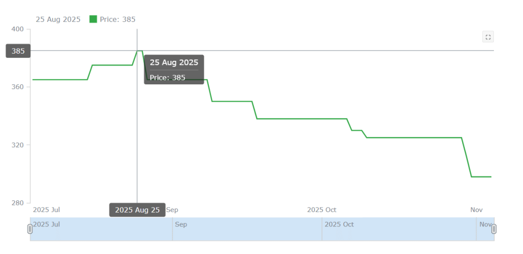 फिनटेक कंपनी Pine Labs Ltd ने अपने IPO का प्राइस बैंड 210–221 रुपये प्रति शेयर तय किया है, जिससे कंपनी की कुल वैल्यूएशन करीब 25,376 करोड़ रुपये बनती है. हालांकि यह बैंड कंपनी के अनलिस्टेड मार्केट प्राइस 298 रुपये प्रति शेयर से करीब 26 फीसदी नीचे है. अगस्त 2025 में Pine Labs के शेयर ग्रे मार्केट में 385 रुपये प्रति शेयर के स्तर तक पहुंचे थे, यानी अब IPO के अपर प्राइस बैंड से लगभग 43 फीसदी की गिरावट आई है. इसका मतलब है कि लेट-स्टेज और रिटेल निवेशकों को भारी मार्कडाउन का सामना करना पड़ रहा है.