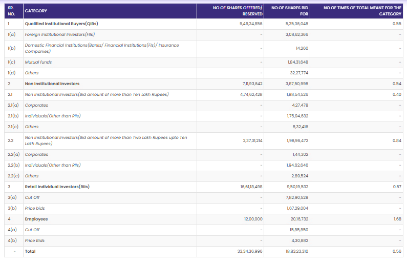 किस कोटे से कितना हुआ सब्शक्रिप्शन