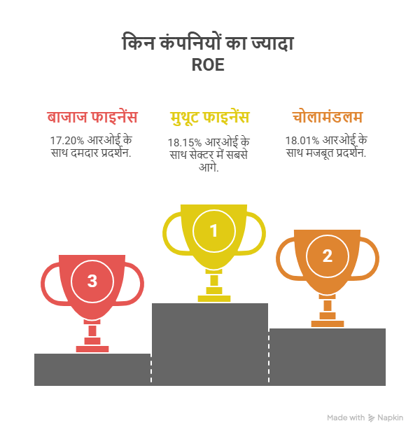 रिटर्न ऑन एसेट्स (ROA) में बाजाज फाइनेंस 3.56% और मुथूट 4.01% पर सबसे आगे हैं.