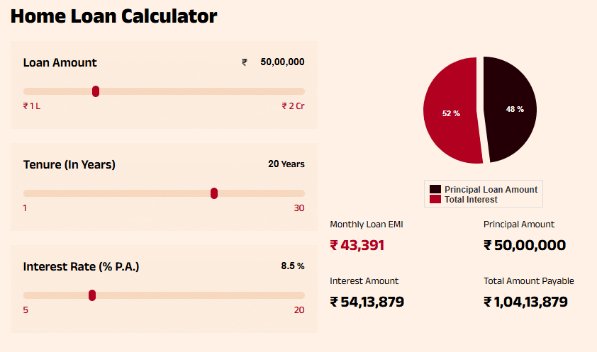 50 लाख रुपये के होम लोन का ब्रेक-अप