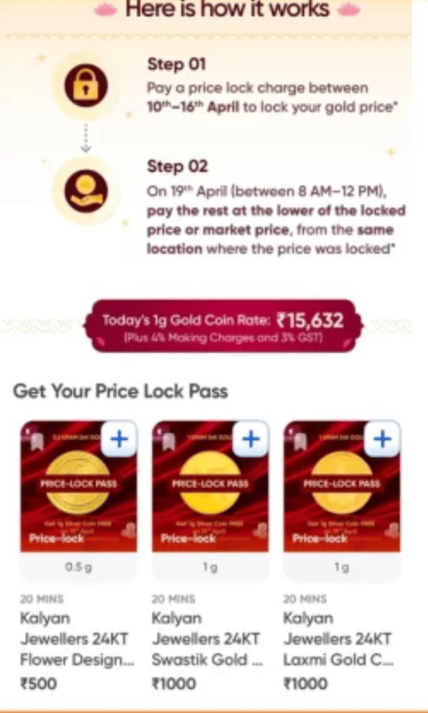 इस ऑफर में आपको पहले एक छोटी रकम (जैसे ₹500 से शुरू) देकर सोने की मौजूदा कीमत लॉक करनी होती है. फिर अक्षय तृतीया के दिन बाकी पैसे देकर खरीद पूरी करनी होती है.