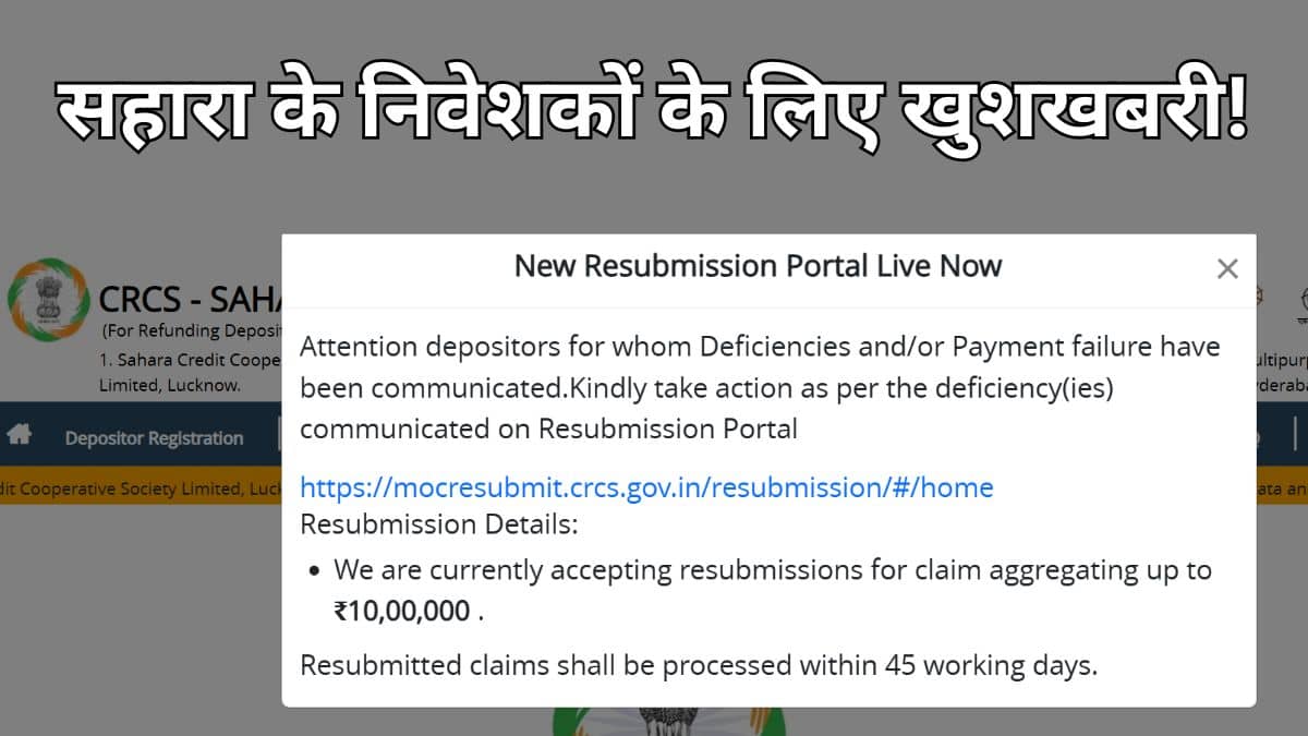 वर्षों से सहारा इंडिया में फंसा पैसा अब वापस मिल रहा है लेकिन सरकार ने इस प्रोसेस को और तेज करते हुए 10 लाख तक के रिफंड क्लेम करने की मंजूरी दे दी है. जिन निवेशकों के आवेदन में पहले कमी पाई गई थी, वे अब Resubmission Portal के जरिए दोबारा दावा कर सकते हैं. प्रक्रिया पूरी तरह ऑनलाइन और तय समयसीमा वाली है.