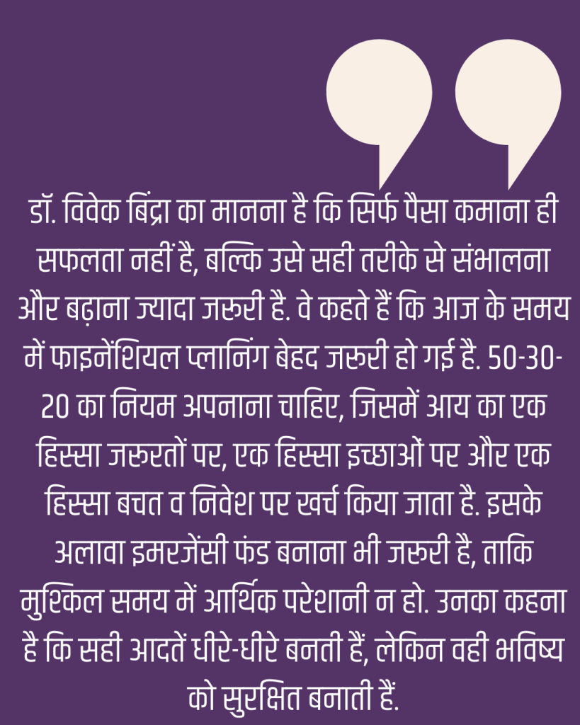 डॉ. विवेक बिंद्रा एक इंटरनेशनल मोटिवेशनल स्पीकर और Bada Business के फाउंडर हैं. उन्होंने बिजनेस कोचिंग के क्षेत्र में अपनी अलग पहचान बनाई है और करोड़ों लोगों को ट्रेनिंग दी है. उनके यूट्यूब चैनल पर 21.1m से ज्यादा सब्सक्राइबर हैं.
