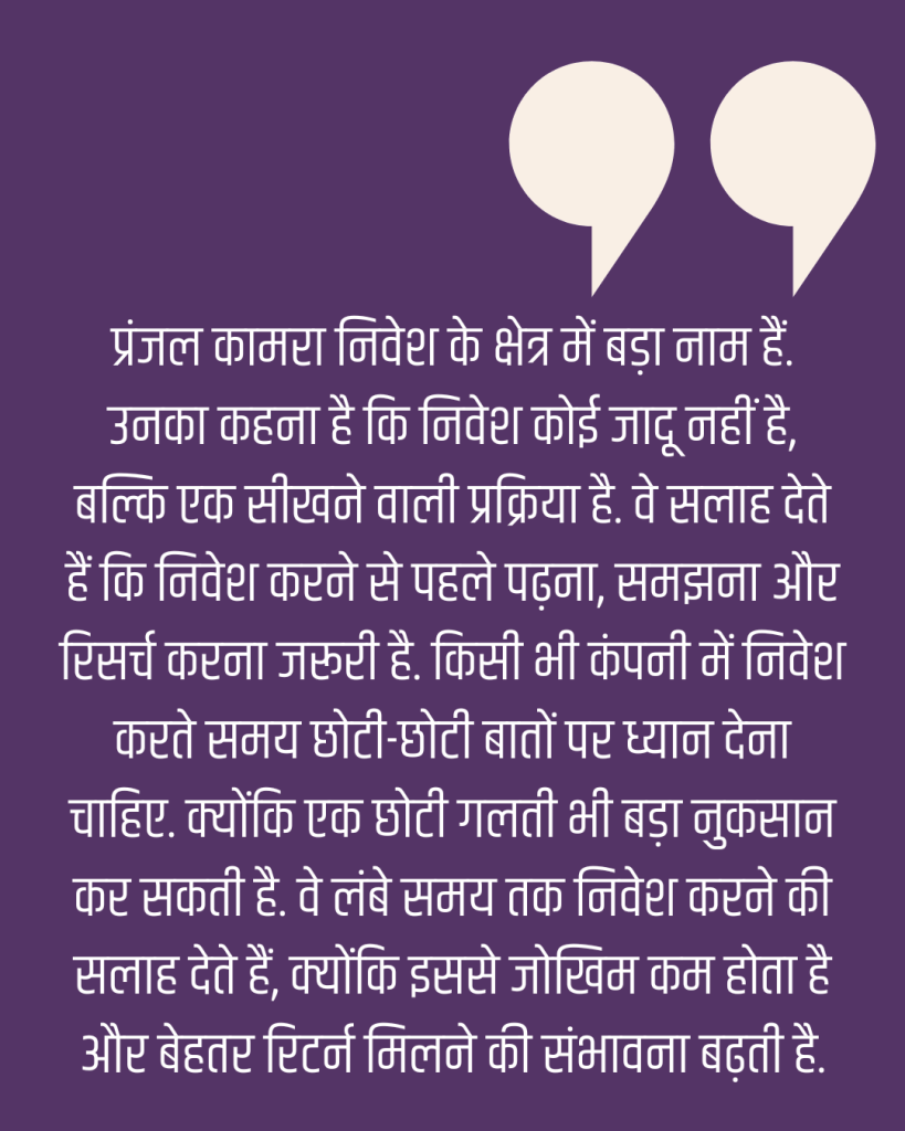 प्रंजल कामरा एक वैल्यू इन्वेस्टर और Finology के फाउंडर हैं. वे यूट्यूब और किताबों के जरिए लोगों को निवेश के बारे में आसान भाषा में समझाते हैं. उनके यूट्यूब चैनल पर 6.49m से ज्यादा सब्सक्राइबर हैं.