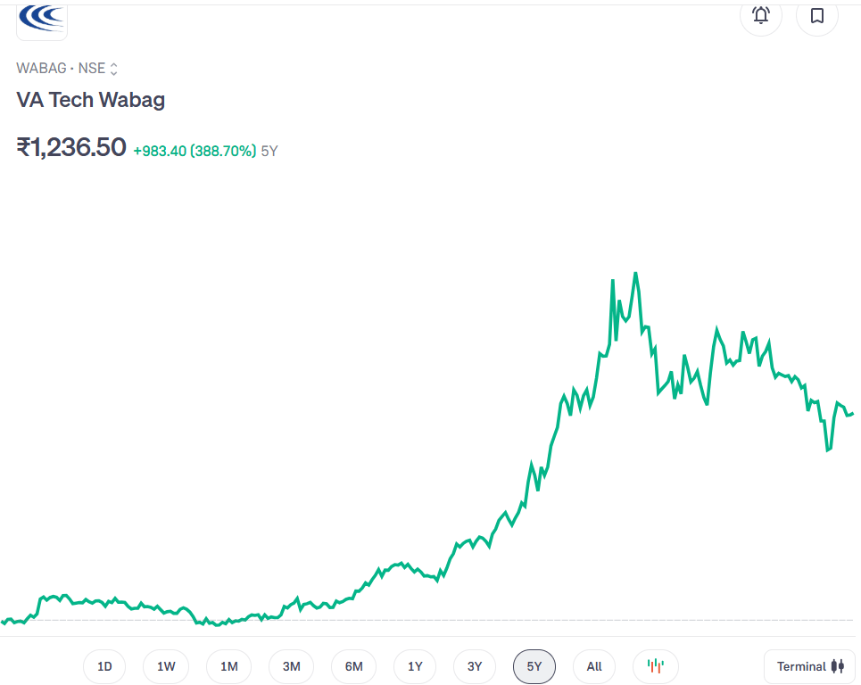 VA Tech Wabag की स्थापना 1924 में हुई थी और यह कंपनी पानी और वेस्टवॉटर ट्रीटमेंट इंफ्रास्ट्रक्चर के क्षेत्र में काम करती है. कंपनी के शेयरहोल्डिंग पैटर्न के मुताबिक दिग्गज निवेशक रेखा झुनझुनवाला के पास कंपनी में 8.03 प्रतिशत हिस्सेदारी है. उनके पास करीब 50 लाख शेयर हैं, जिसकी वजह से यह स्टॉक निवेशकों के बीच खासा चर्चा में रहता है.