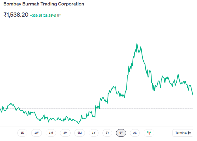 Bombay Burmah Trading Corporation की स्थापना 1863 में हुई थी और यह वाडिया ग्रुप की प्रमुख कंपनी है. कंपनी चाय, कॉफी, बिस्किट, डेयरी प्रोडक्ट, ऑटो इलेक्ट्रिक और हेल्थकेयर जैसे कई अलग-अलग कारोबार में मौजूद है. कंपनी का मार्केट कैप करीब 10,757 करोड़ रुपये है. इसके शेयर करीब 1,541.80 रुपये पर बंद हुए, जो पिछले दिन के मुकाबले करीब 4.94 प्रतिशत नीचे थे.