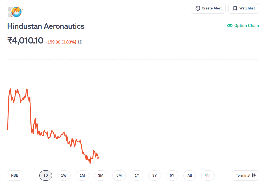 HAL Stock fall: हिंदुस्तान एयरोनॉटिक्स लिमिटेड (HAL) के शेयरों में लगातार आ रही गिरावट ने निवेशकों के बीच एक बार फिर यह सवाल खड़ा कर दिया है कि क्या तेजस लड़ाकू विमान से जुड़ी लगातार घटनाएं और डिलीवरी में हो रही देरी कंपनी के भरोसे पर असर डाल रही हैं. सोमवार को HAL के शेयर 4 फीसदी के करीब टूट गए और करीब 4,010 रुपये पर ट्रेड करते दिखे. इस गिरावट की बड़ी वजह भारतीय वायुसेना के तेजस फाइटर जेट से जुड़ी एक नई घटना और उससे जुड़े व्यापक असर हैं.
