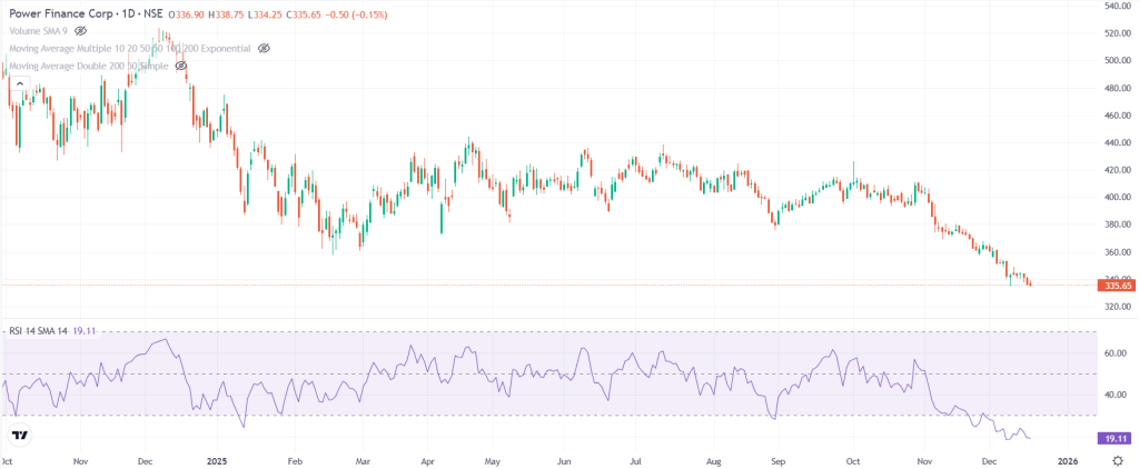 बुधवार को कंपनी का मार्केट कैप 110883.42 करोड़ रुपये रहा. शेयर 333.65 रुपये पर बंद हुआ और RSI 19.11 दर्ज किया गया. RSI के हिसाब से शेयर गहराई से ओवरसोल्ड जोन में है और यहां से बाउंस की संभावना मानी जा रही है.