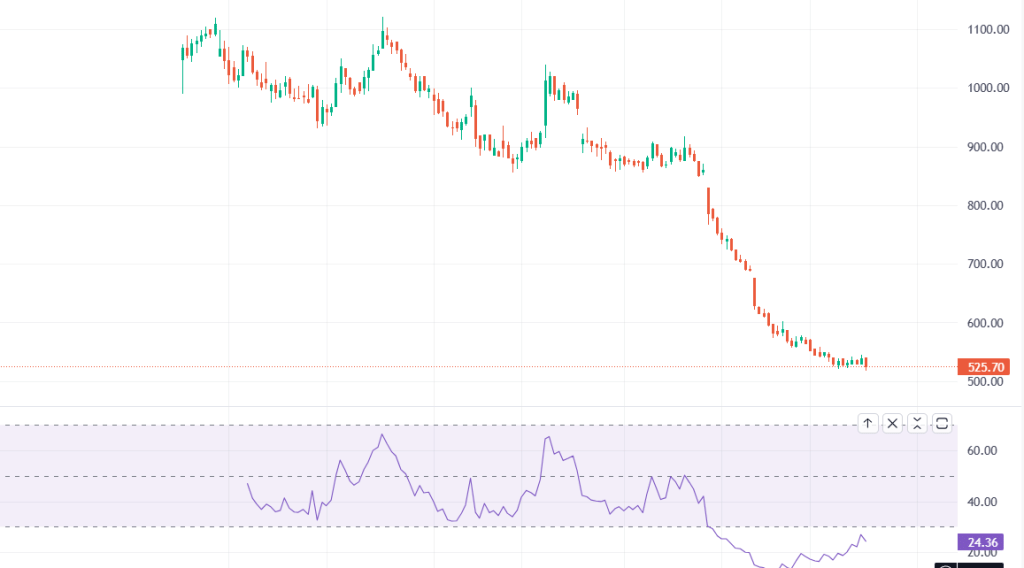 बुधवार को कंपनी का मार्केट कैप 20545.77 करोड़ रुपये रहा. शेयर 525.70 रुपये पर बंद हुआ और RSI 24.36 रहा. यह भी ओवरसोल्ड जोन में है और रिकवरी की उम्मीद बन रही है.