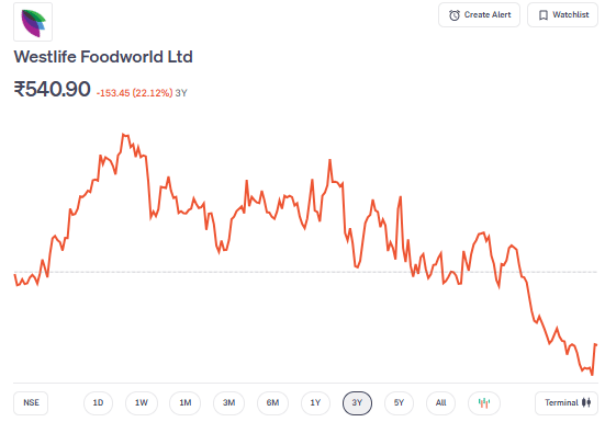 Westlife Foodworld का Q3FY26 राजस्व 2.6% बढ़ा और EBITDA मार्जिन 14.6% रहा. समान स्टोर बिक्री 3.2% घटी लेकिन लागत नियंत्रण से मार्जिन सुधरे. कंपनी के पास 73 शहरों में 458 रेस्टोरेंट हैं और 2027 तक 580–630 आउटलेट का लक्ष्य है. इस शेयर ने पिछले 3 साल में 22 फीसदी का नेगेटिव रिटर्न दिया है.