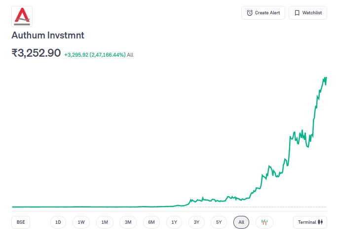 इस लिस्ट में पहला नाम है Authum Invstmnt का. ये NBFC सेक्टर में काम करती है. मौजूदा वक्त में ऑथम इन्वेस्टमेंट के एक शेयर की कीमत 3252.90 रुपये हैं. पिछले तीन महीने में कंपनी के शेयर में 22 फीसदी से अधिक उछला है. 11 जून 2015 को इस कंपनी के एक शेयर की कीमत 1.33 रुपये थी. बीते 10 साल में कंपनी ने 247166 फीसदी का रिटर्न दिया है. यानी 1 लाख रुपये 24 करोड़ 71 लाख 66 हजार बन गए.