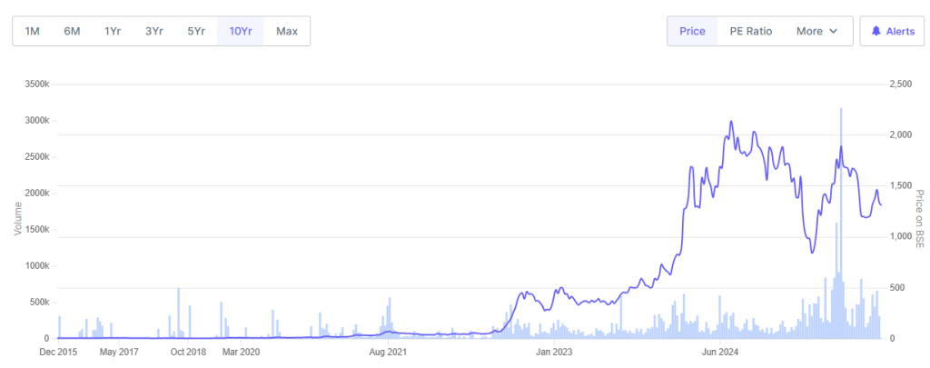 सोमवार को मैटल्स, माइनिंग और एनर्जी सेक्टर में काम करने वाली कंपनी Lloyds Metals & Energy के शेयर 1331.80 रुपये पर कारोबार कर रही है. stockanalysis के आंकड़ों के अनुसार पिछले दस साल में इस कंपनी के शेयर ने 35, 730 फीसदी से अधिक रिटर्न दिया है.